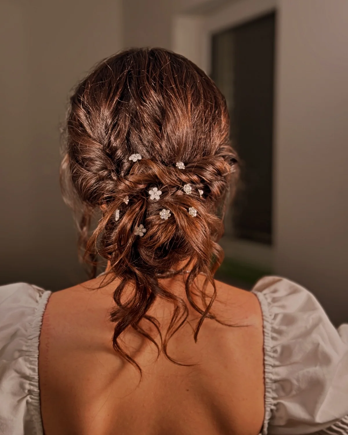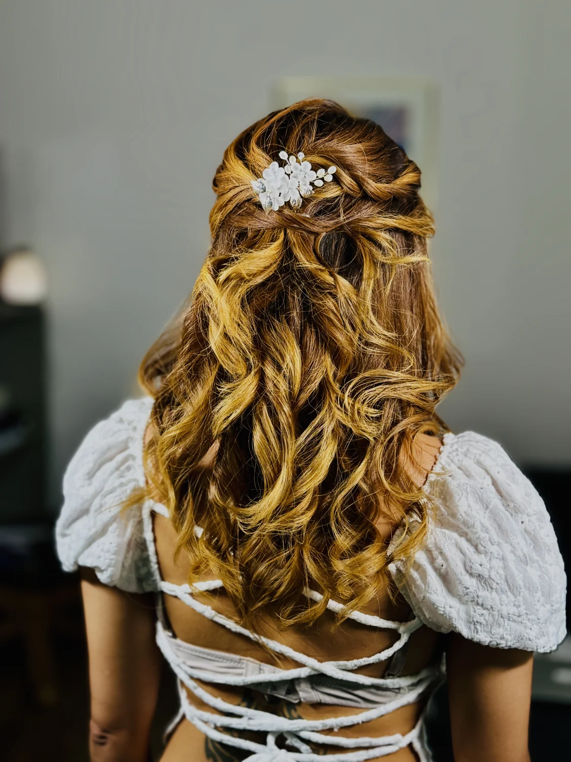 Ich biete professionelle Hair-Styling-Dienstleistungen für verschiedene Frisuren an, wie zum Beispiel geflochtene Frisuren, Hochsteckfrisuren, welliges Haar in verschiedenen Varianten oder elegante, tiefe Duttfrisuren.